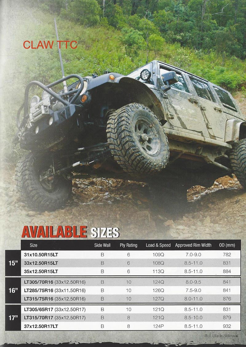 Angled Shoulder Scallops and Two-Pitch SideBiter Pattern for off road traction.
